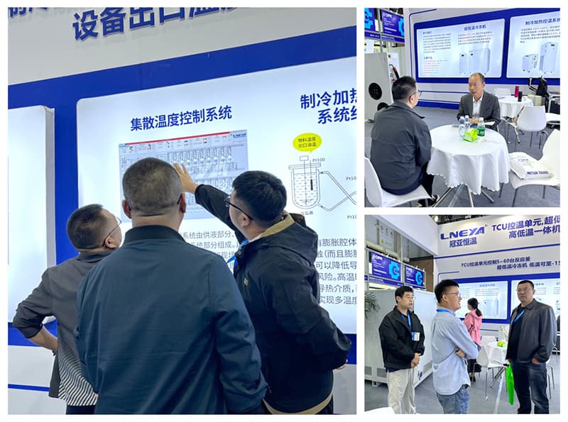 冠亚恒温展出的高低温一体机、TCU控温单元、超低温冷冻机,凭借其宽温域覆盖/高精度控制/快速升降温/系统稳定可靠/操作便捷安全,成为现场关注的焦点。众多观众驻足体验,深入咨询,充分展现了市场对高精度制冷加热控温设备的迫切需求。